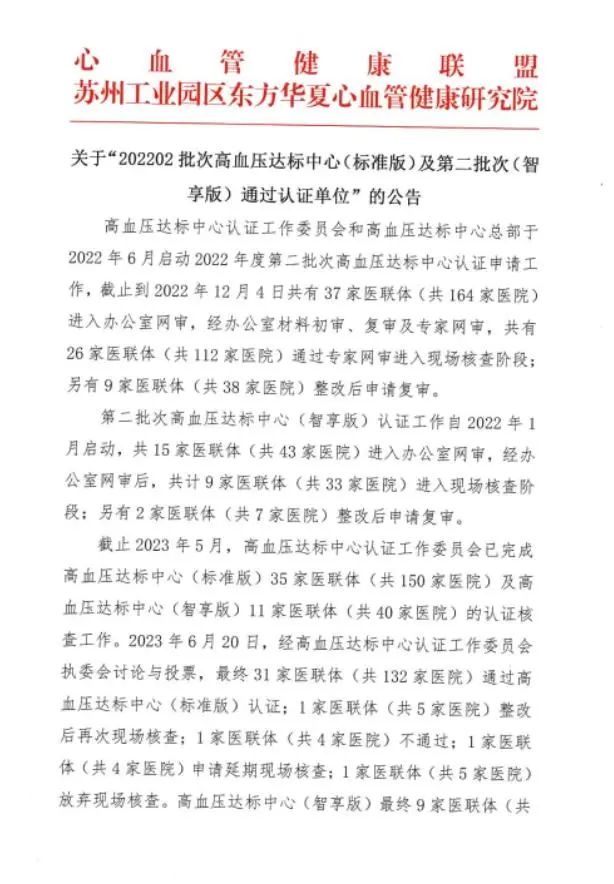 好消息!在曆經初審、複審、專家網審、現場認證核查、公示等程序後,通用環球中鐵西安醫院及所屬碑林區太乙路(lù)社區衛生(shēng)服務中心、太乙路(lù)第二社區衛生(shēng)服務中心成功通過“202202批次高血壓達标中心(标準版)及第二批次(智享版)”認證!