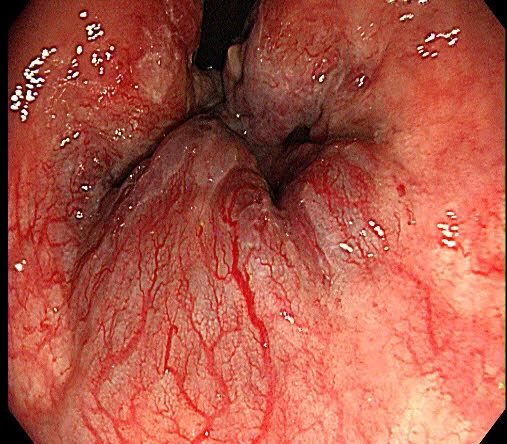 張排旗行腸鏡檢查,發現齒狀線上方可(kě)見(jiàn)多個痔核,其中三個母痔核較大(dà),呈紫藍色,進鏡觀察肛周粘膜松弛,可(kě)見(jiàn)粘膜脫出肛門(mén)外。經詳細評估,趙先生(shēng)被診斷爲“内痔III°伴粘膜脫垂”,單純行内痔硬化治療不能解決,張排旗遂決定行“内鏡下内痔硬化+套紮術(shù)”。近日(rì),趙先生(shēng)順利接受了手術(shù),術(shù)後當天即可(kě)下床走路(lù),無疼痛、便血等不适。