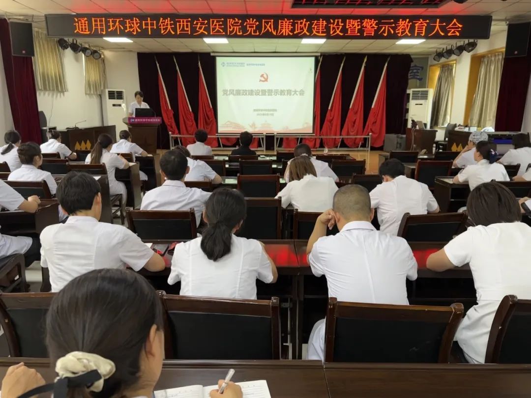 爲切實保障群衆就(jiù)醫權益,進一步推動黨風(fēng)廉政建設走深走實,8月10日(rì)下午,通用環球中鐵西安醫院在門(mén)診三樓多功能廳召開黨風(fēng)廉政建設暨警示教育大(dà)會。院領導班子、中層幹部、黨員(yuán)及部分(fēn)員(yuán)工(gōng)參加。