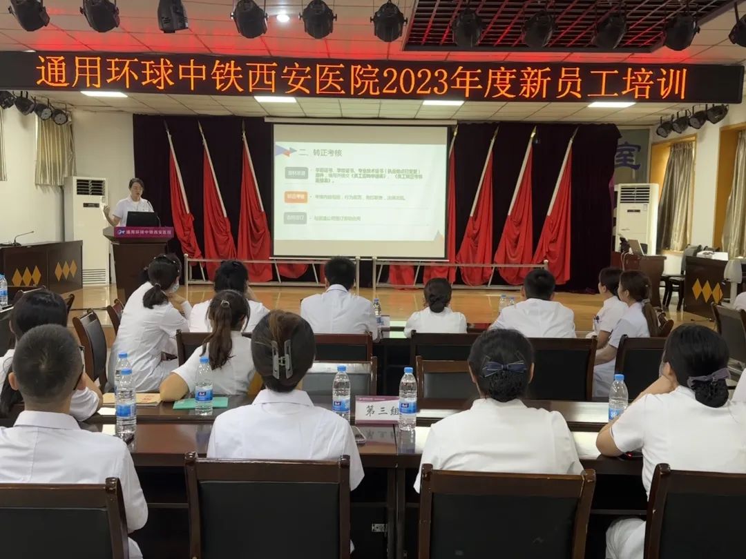 8月11日(rì),通用環球中鐵西安醫院2023年(nián)度新員(yuán)工(gōng)培訓在門(mén)診三樓多功能廳舉辦。院黨委書(shū)記、院長梁曉霞,副院長栾育欣、趙芳仍及四名内訓師(shī)參會,并與58名新員(yuán)工(gōng)親切交談。