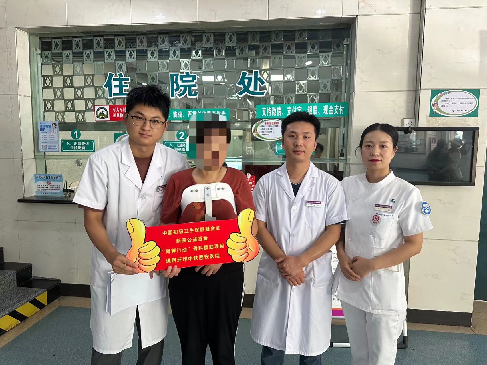 幸運的是,我院前不久被中國(guó)初級衛生(shēng)保健基金會确定爲新燕公益基金“骨舞行動”骨科(kē)疾病援助項目的定點醫院。鑒于梁阿姨家庭困難的特殊情況,姬傳磊立即幫她提出申請(qǐng),積極對接新燕基金項目。