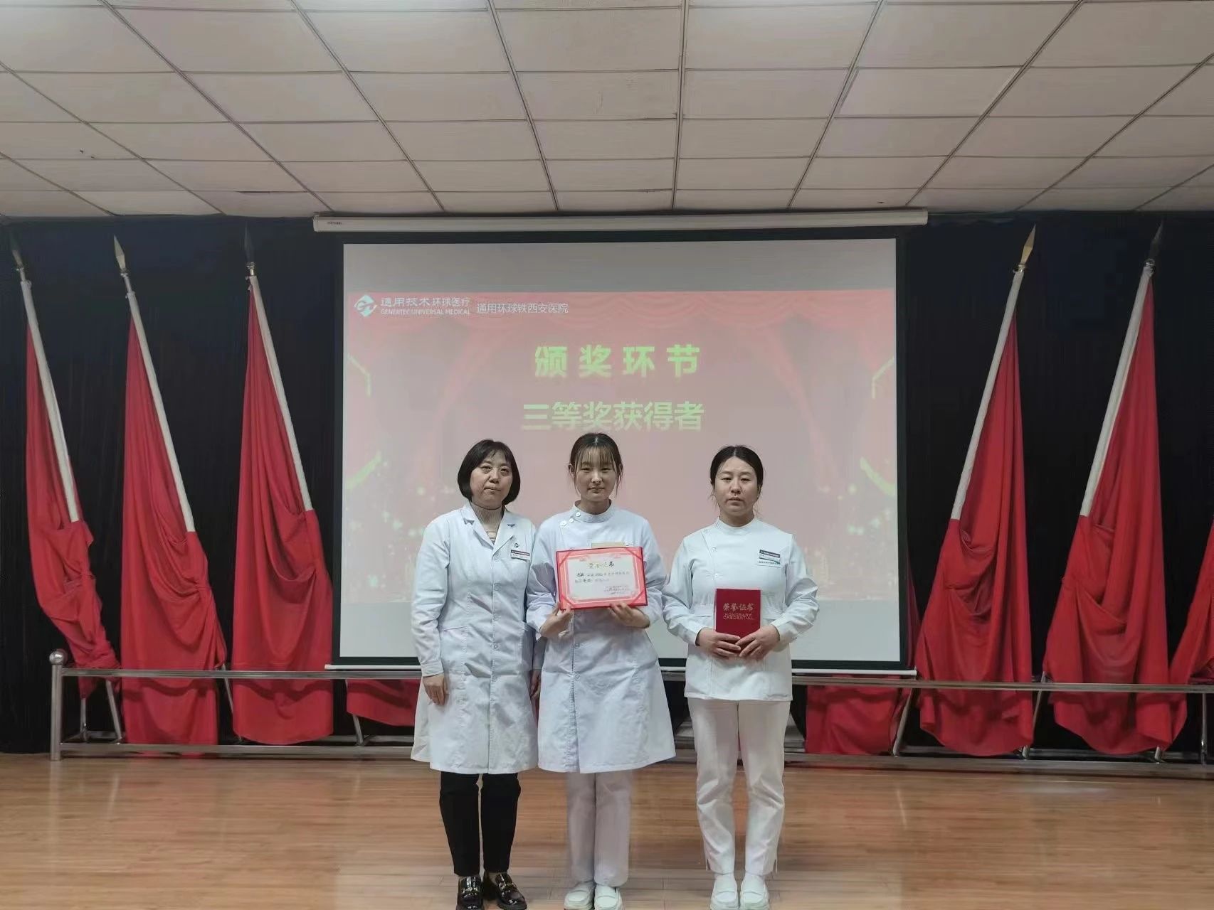 爲進一步提高護理(lǐ)人(rén)員(yuán)基本技能水平和應變能力,規範臨床護理(lǐ)技術(shù)操作(zuò),更好服務于患者,11月3日(rì)下午,通用環球中鐵西安醫院工(gōng)會聯合護理(lǐ)部在門(mén)診三樓多功能廳舉辦了護理(lǐ)技能競賽。副院長趙芳仍、參賽選手及部分(fēn)護士參加。