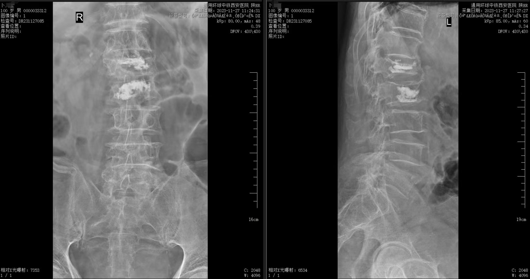 蔔爺爺生(shēng)于1923年(nián),已100歲高齡,1周前不慎摔倒,緻胸背部持續性疼痛,活動受限。家人(rén)立即将老人(rén)送至我院,行胸腰椎MRI(核磁共振成像)檢查發現:腰1、腰2椎體(tǐ)新鮮壓縮性骨折。
