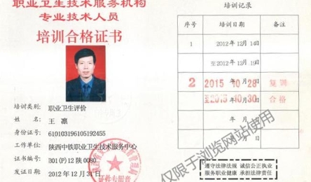 陝西中鐵職業衛生(shēng)技術(shù)服務有限公司質量負責人(rén)王凜。 1984年(nián)7月畢業于南(nán)京鐵道醫學院臨床醫學專業(五年(nián)制,證書(shū)編号:84259)。2001年(nián)5月13日(rì)被陝西省授予副主任醫師(shī)職稱(證書(shū)編号:No.0...